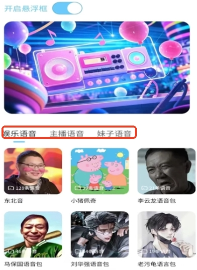 2、点开喜欢的语音类型就会出现很多的语音包。