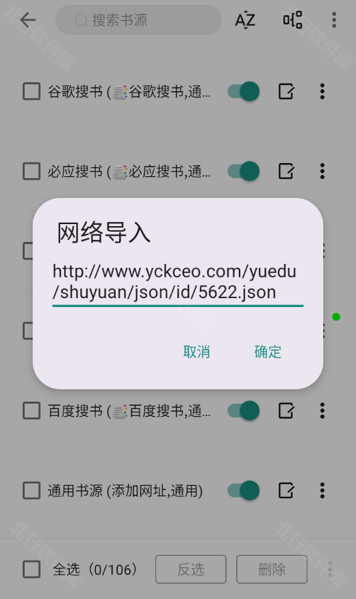 5、将链接粘贴在read小说【网络导入】窗口中,点击【确认】即可完成外部书源导入