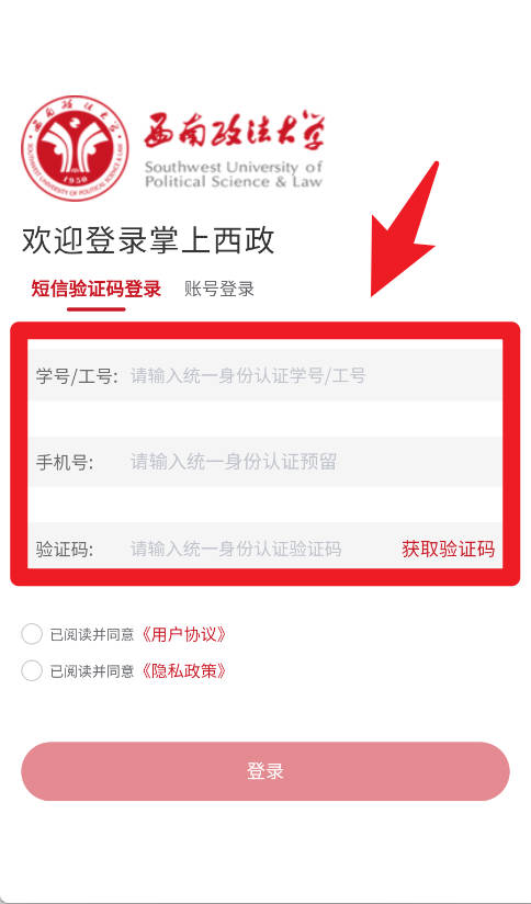 1、在短信验证码登录页面,输入学号工号与绑定手机号,点击获取验证码并填写后即可完成快捷登录,适合忘记密码时快速进入系统。