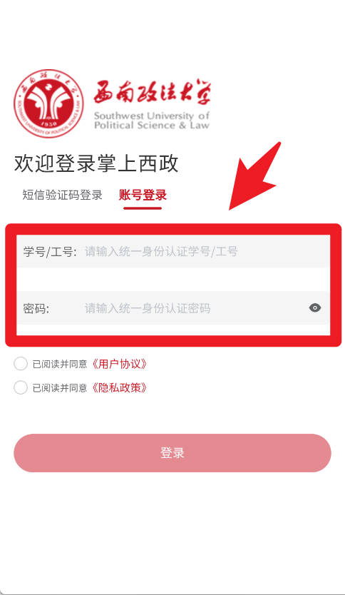2、在账号登录页面,用户需填写学号工号及统一身份认证密码,通过此方式能够安全进入平台,适合习惯使用密码的同学。