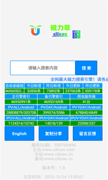 实时展示资源数据(如总收录磁链数、今日 / 昨日新增与更新量),以及用户访问数据(PV、IPUV),让用户清晰了解平台资源活跃度;