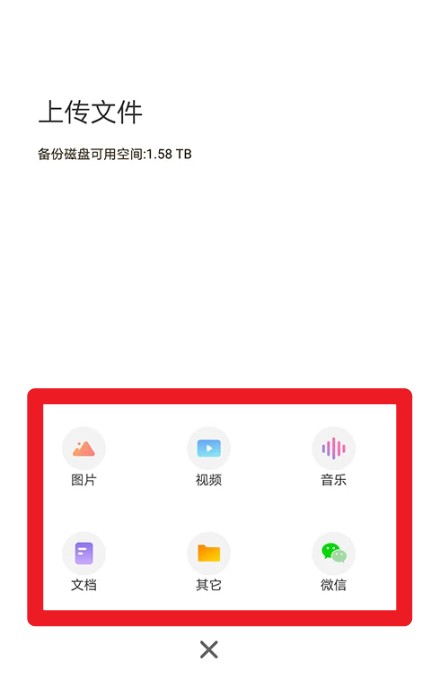 4、点击下方中间的“+”号按钮,在弹出的上传菜单中选择要上传的文件类型,如图片、视频或文档等。
