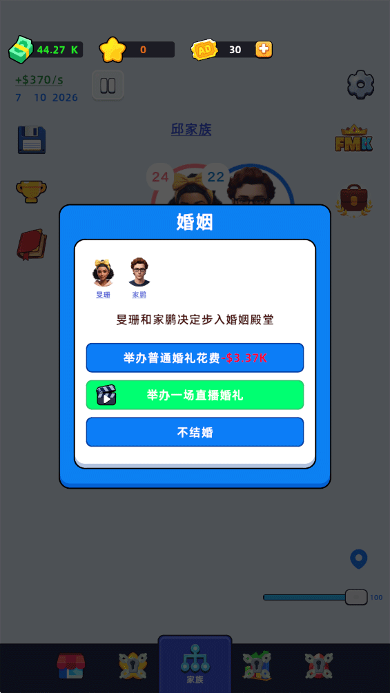 5、随着时间的发展你还可以为角色选择结婚、生孩子来发展你的家族系统