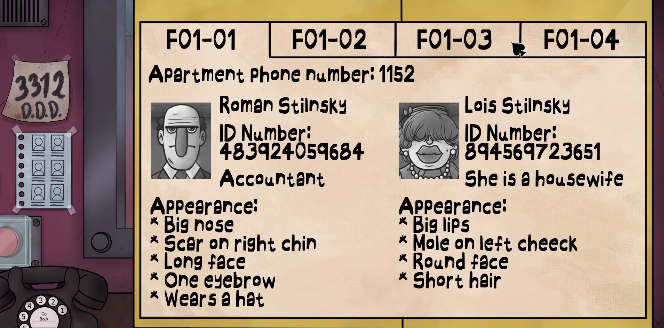 游戏中的访客(包括伪人)拥有基础AI学习能力——如果玩家多次通过“检查证件照片”甄别伪人,后续伪人会优先选择“照片与本人高度相似”的伪装;若频繁使用电话核实,部分伪人会模仿居民声音应对。这种“动态对抗”让玩家无法依赖固定套路,必须不断调整策略,就像在与真正的对手博弈。