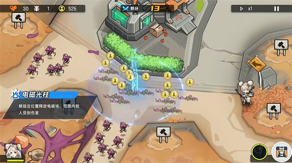 1技能:电磁光柱:朝指定位置释放电磁场,范围内敌人受到伤害