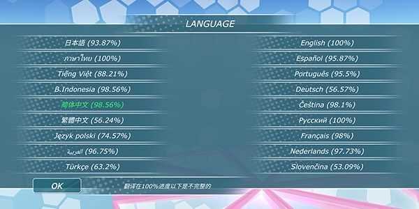 设置第二行第一个可更改语言为中文,目前游戏汉化不完全,请耐心等待厂商后续优化