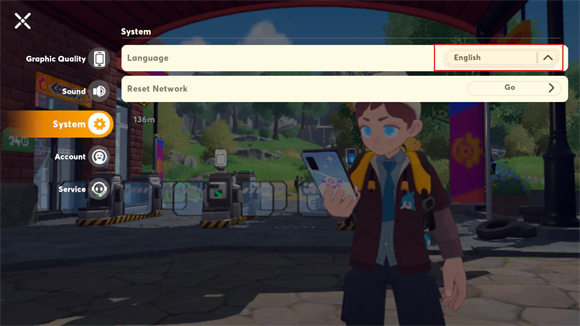 3、然后在system选项里点击language里的English按钮来切换成简体中文。