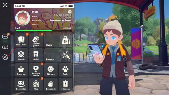 7、在界面点击左上角的脚印图标可以进入卡米列表,能升级卡米和为卡米学习技能。