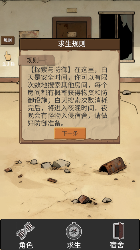 宿舍求生废土篇是超级好玩的角色扮演类游戏。玩家身处末日世界,唯一目标是活下去,需击杀肆虐怪物、收集必要物资、获取强大装备。游戏玩法多样,有超多随机事件,以灾后校园宿舍群为核心场景,还需管理背包、合成道具,探索风格各异且随机生成的宿舍房间。