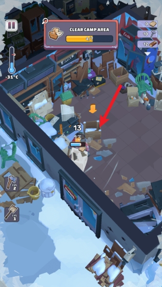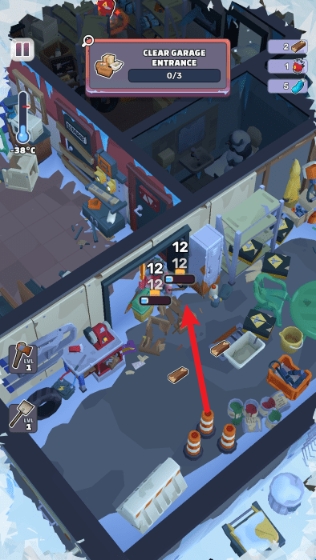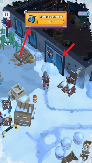 2、接着根据任务的提示,来到营地的大门,用铲子将雪铲走就能进入了。