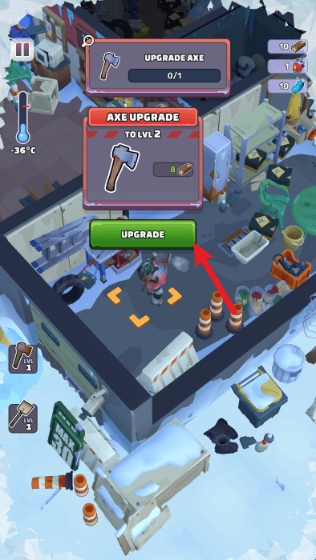 4、有了足够的资源后,我们可以去升级自己的工具,例如斧头,可以帮助你去扫除更多障碍。